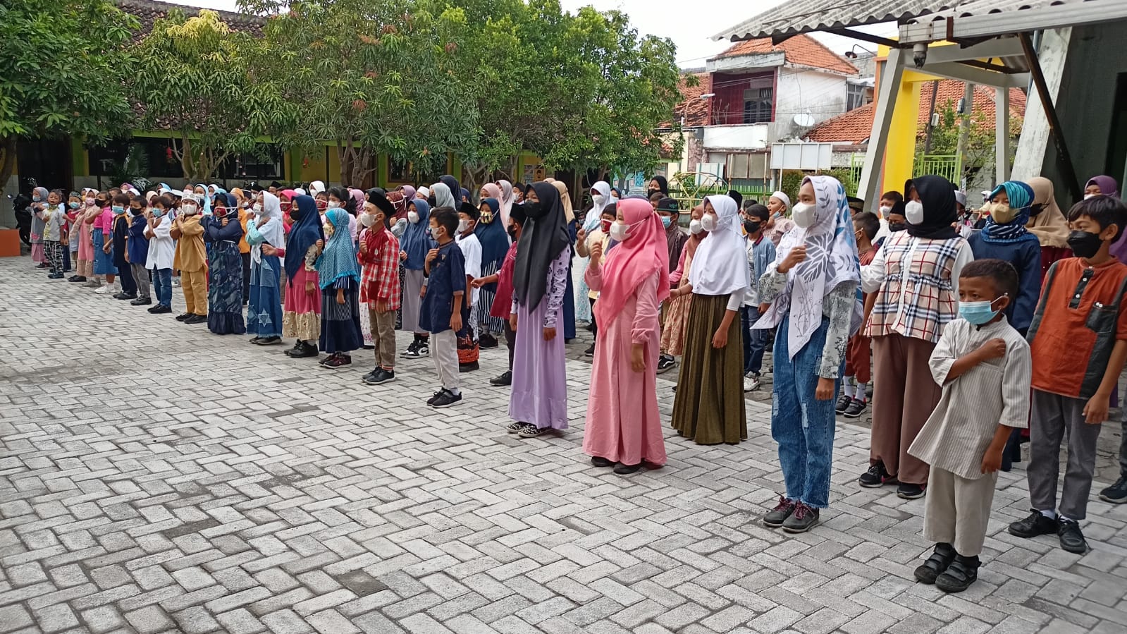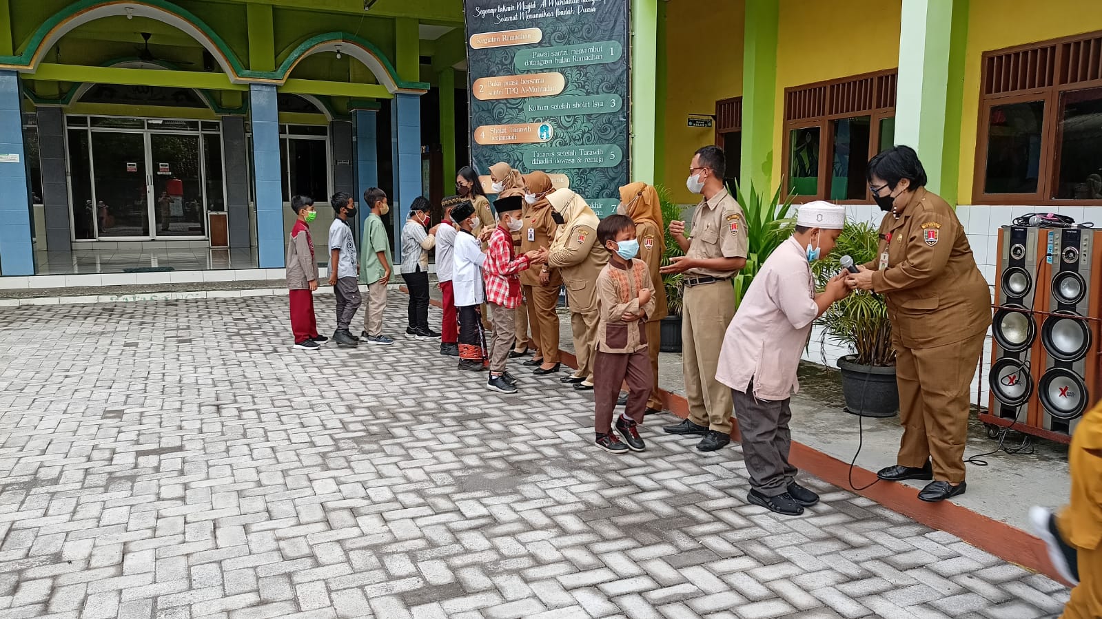 Halal Bihalal pada hari Senin, 9 Mei 2022 diikuti oleh seluruh guru, karyawan, dan siswa siswi di halaman sekolahÂ